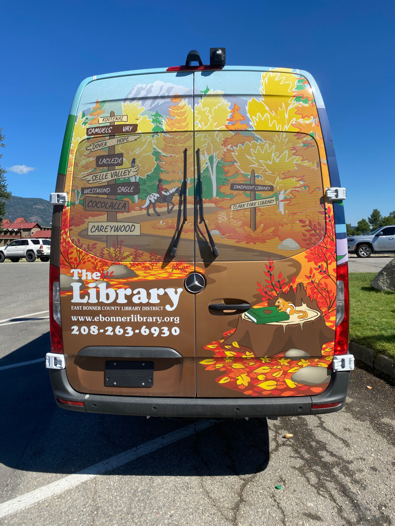 The EBCLD Bookmobile has finally arrived, and I couldn’t be more pleased! Not every illustrator gets to stand next to a life-size version of their character, and I’m so grateful to the team at East Bonner County Library for giving me this opportunity.